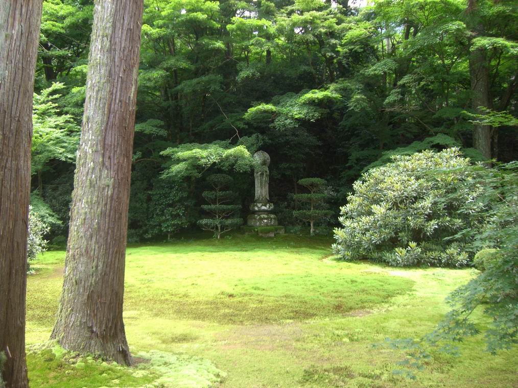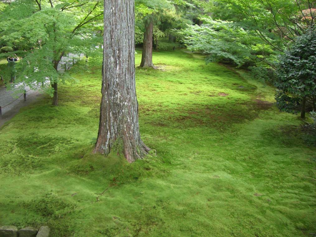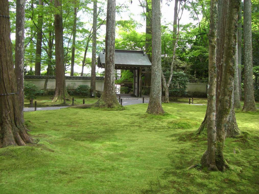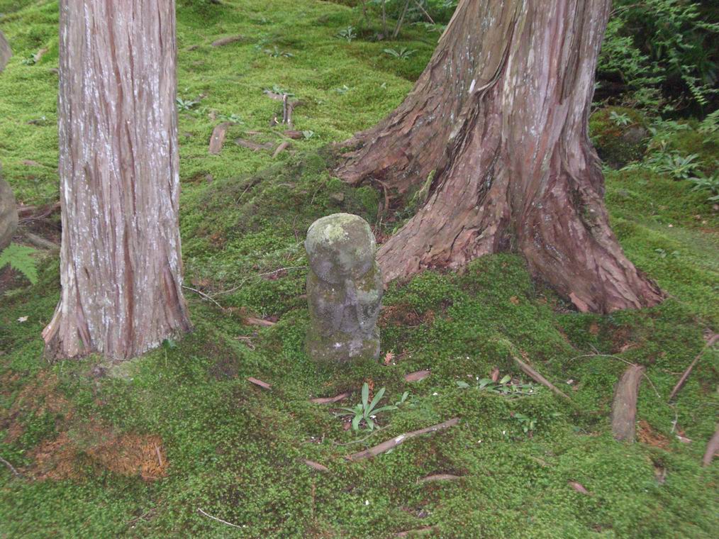 Mousse et troncs devant la porte de sortie de Sanzen-in