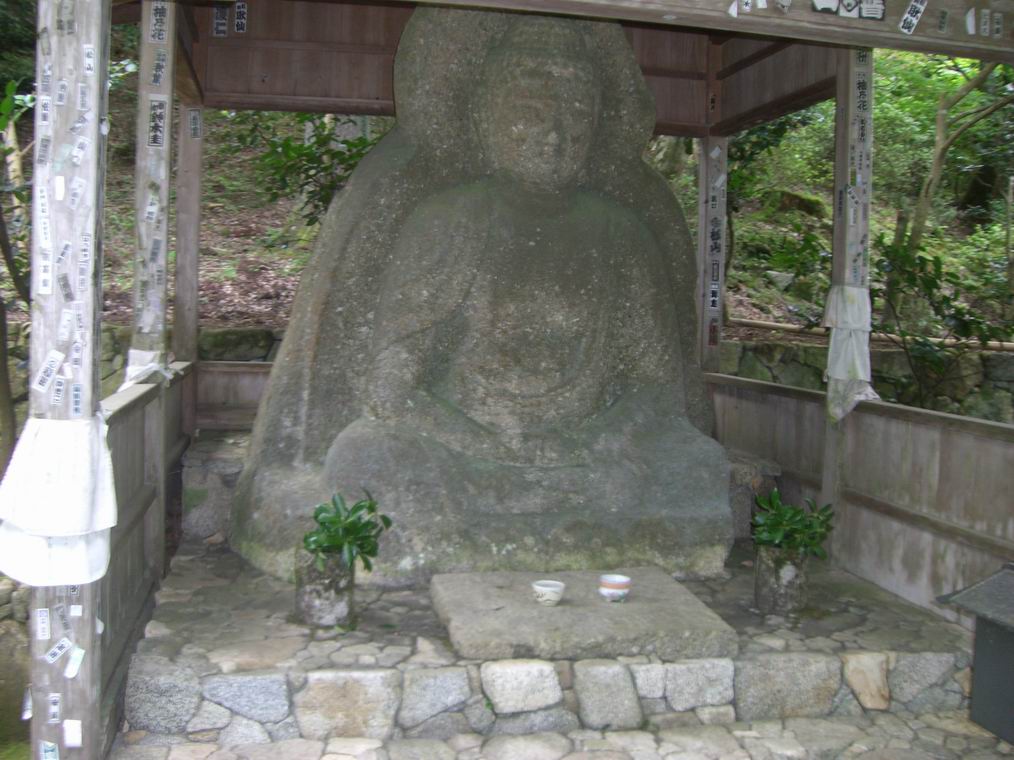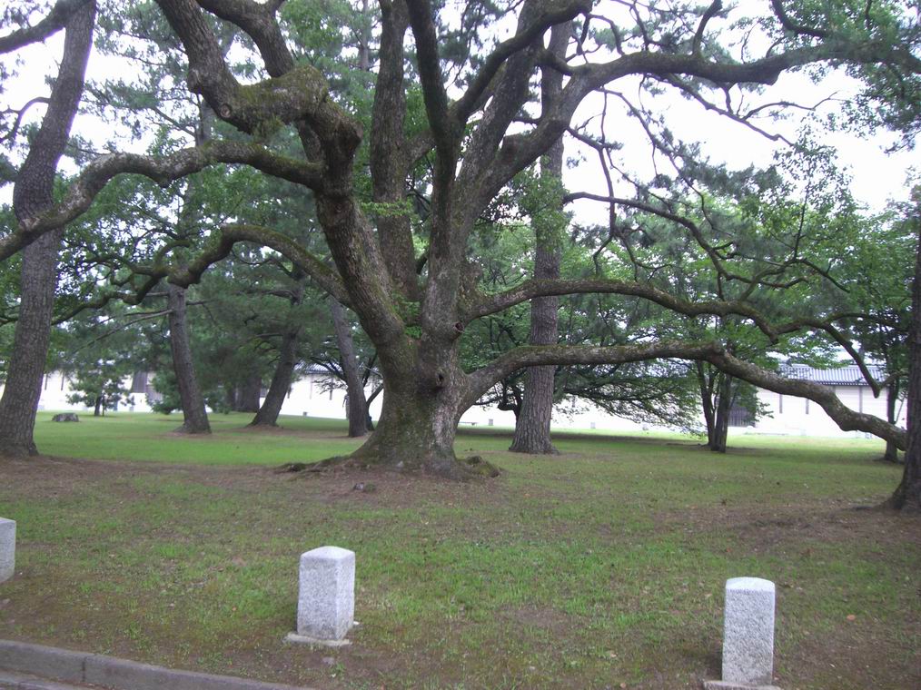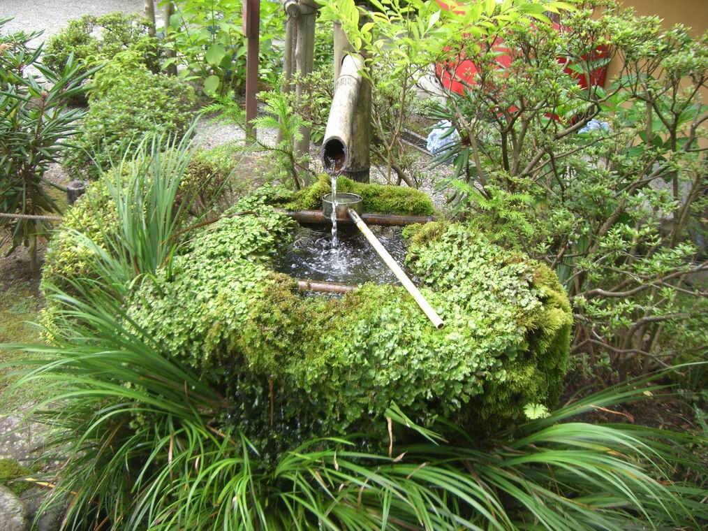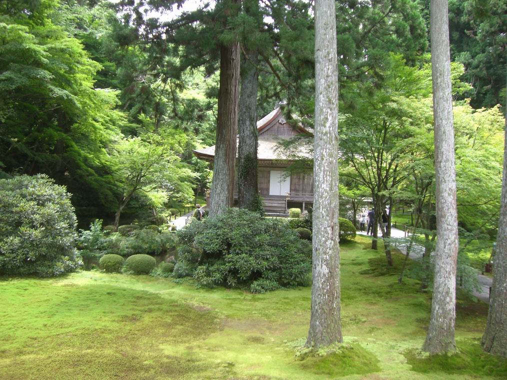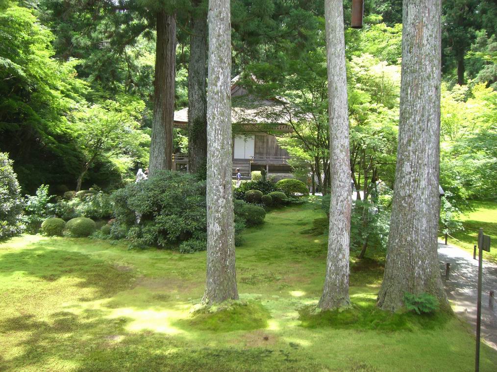 Mousse et troncs devant la porte de sortie de Sanzen-in