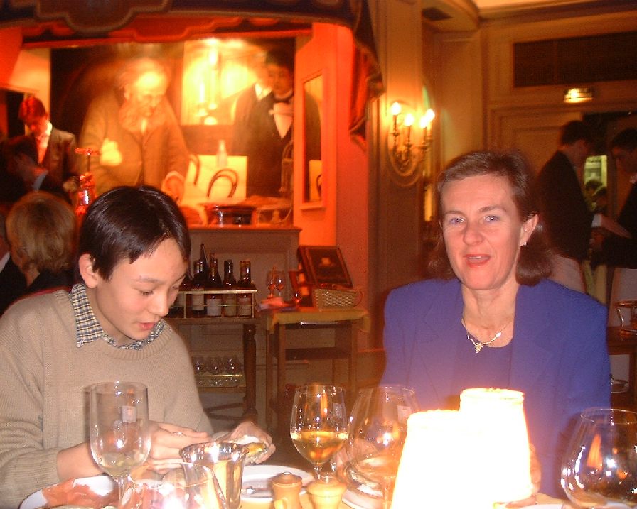 Thomas fête avec ses parrain et marraine, Patrick, Soizic et Yayoi son passage à 1er Dan 初段の祝い |