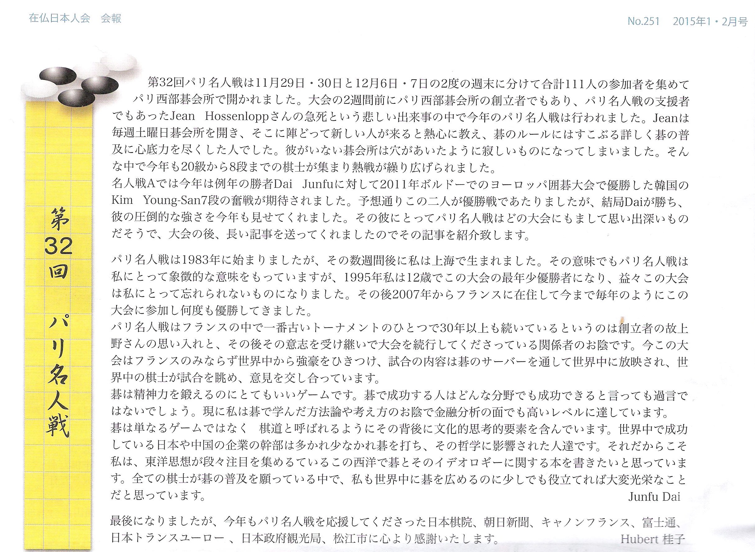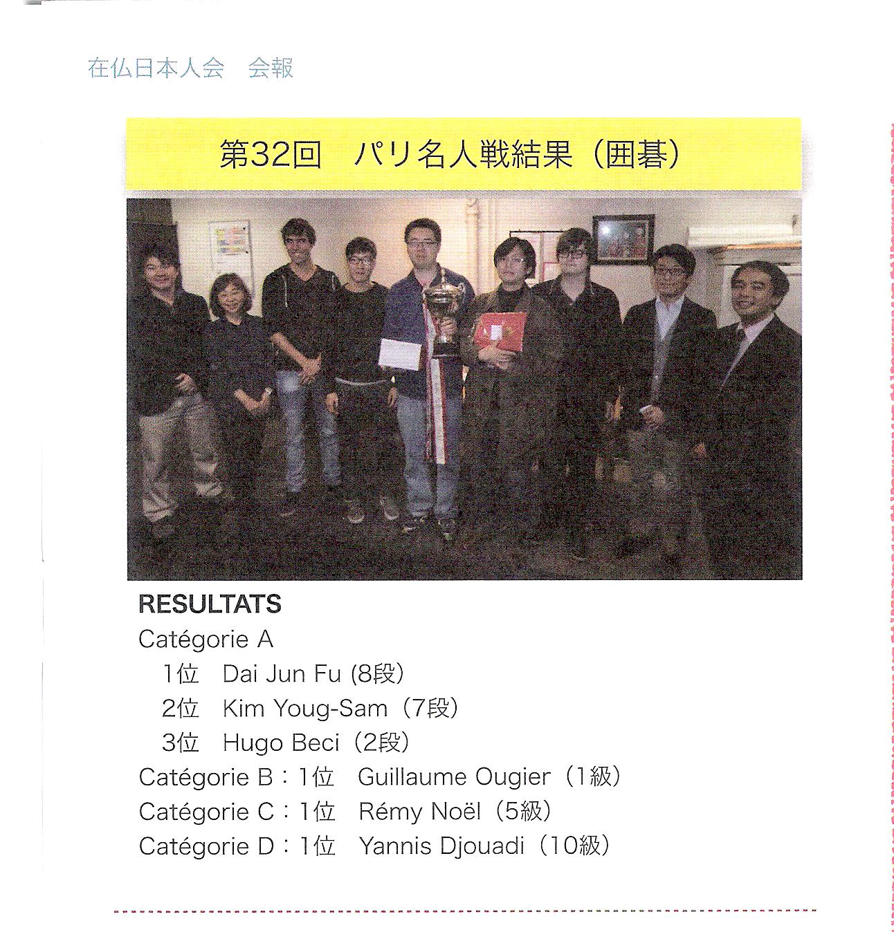 Compte rendu du tournoi en japonais. 日本語のパリ名人戦2014 パリ名人戦2014 の2