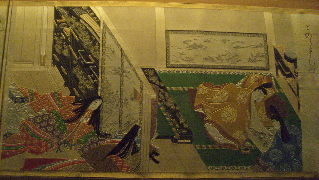 Le musée Guimet vient à nouveau d'organiser une belle exposition que j'ai pu visiter le 10 janvier 2010, le dernier jour. Le Maître tisserand Yamaguchi Itarô a consacré les 37 dernières années de sa vie à tisser 4 superbes rouleaux qui combinent calligraphie et peintures illustrant le Dit du Genji. Il a utilisé pour cela des métiers Jacquard, et a voulu remercier la France pour cette invention en léguant le chef-d'œuvre de sa vie.