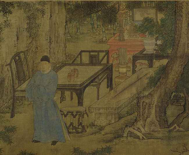 | Un élégant au jardin des abricots. Dynastie Ming 1437.