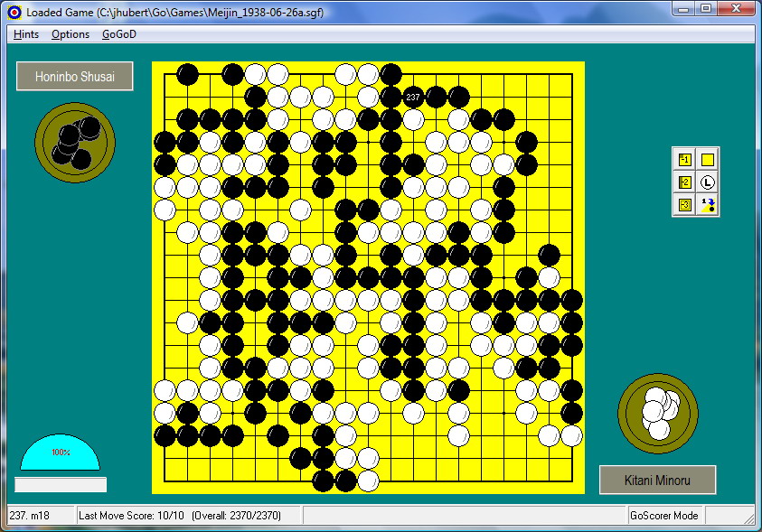 La partie de Shusai contre Kitani, qui sert de support à la fameuse nouvelle Meijin de Kawabata (en français, Le Maître ou le tournoi de go) m'a servi de modèle et je dois avouer que j'ai du la reproduire 15 fois en 7 mois avant de pouvoir reproduire ses 237 coups sans me tromper une seule fois.