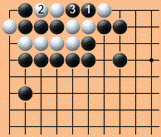 éternelle. Pour ne pas perdre l'ensemble de son groupe, Blanc 4 doit prendre les pierres noires 1 et 3, et on revient à la position de départ. De même, pour éviter que Blanc vive, Noir 5 doit être joué en 1, suivi de Blanc 6 en 2 et ainsi de suite. Cette situation peut conduire à une partie nulle en règle