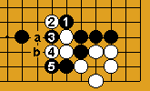 cette variante de tenaille sur le hoshi, Blanc doit jouer en « b ».