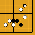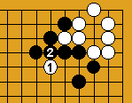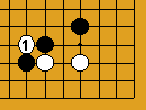 joué à l’angle de 2 pierres formant un kosumi ; nom donné aux jôséki qui