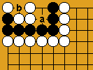 en « a » mais doit d’abord approcher en « b ». Après avoir gagné le kô comme