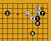 dans le Dia. 2, Blanc peut obtenir un séki en « b » ou tenter