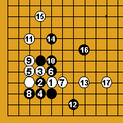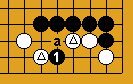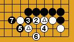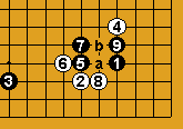 début de jôséki sur le hoshi, Noir forme avec 1,5,7 et 9 une forme appelé
