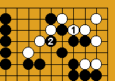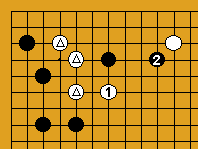 2 : Si blanc fait atari en 1, Noir reçoit en kô avec 2 Dia