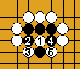 3 : Si blanc capture avec 1 et 3, Noir isole le coin avec 2 et 4. |