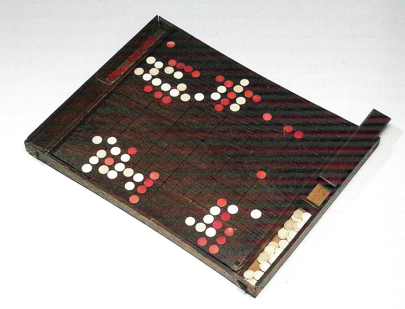 | Jeu en bois découvert en 1973. D'après le site, où l'on trouve une étonnante collection sur l'histoire du go en Chine, au japon et en Corée (en chinois) |