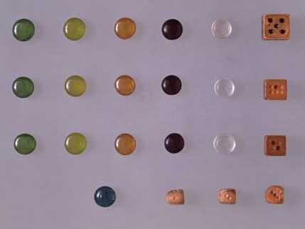 | D'autres pierres et des dés de l'époque Nara servant dans d'autres jeux de l'époque. |