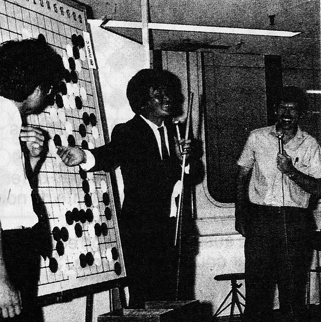 Blanc: Michael Redmond, Américain, 22 ans, apprend le go au Japon depuis l'âge de 14 ans, actuellement 4e dan pro.