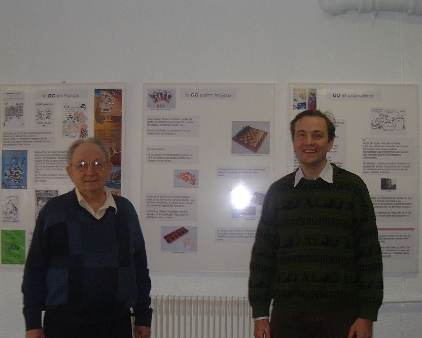 Le secrétaire et le président du COP : Jean Hossenlopp, Jérôme Hubert posent devant les panneaux explicatifs sur le Go de la Ligue du centre |