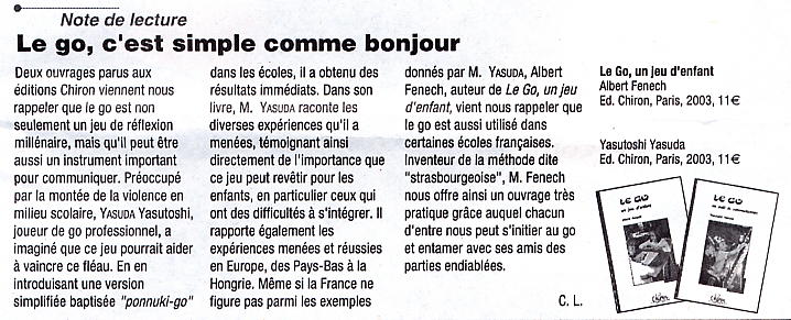 On y trouvait également une note de lecture sur les 2 derniers livres des éditions Chiron