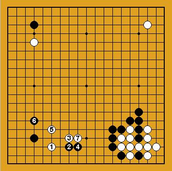 Si Noir pince en 2, il faut jouer B 3 et la suite jusqu'en B 7.