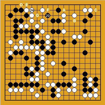 Début du yose. Quel est le meilleur coup pour noir : A,