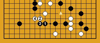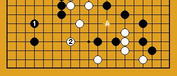Si blanc joue en 'A', noir coupe en 'B'. Si blanc persiste à prendre une