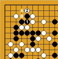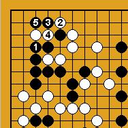 Noir en 1 du dia.17b provoque la coupe en 2. Le hane-connexion 3-5