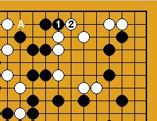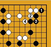blanc joue 2, noir répond en 3, avec pour objectif la coupe en 'A'. Si au