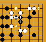 lieu de 2 blanc répond en 'A', noir 'B' devient un coup forçant, et noir