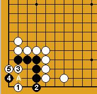 Solution 22b : Et si vous avez pensé à jouer en 5 (après le sacrifice des pierres noires 1 et 3), vous avez trouvé un ishi-noshita, mais cela ne donne qu'un ko ! Après N11 en 3, Blanc connecte en 1, Noir fait atari en D et Blanc peut jouer le ko en 4. |