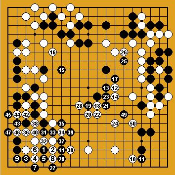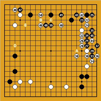 Blanc 46 devrait être joué en D. Noir 47. Noir décide de ne pas se