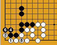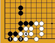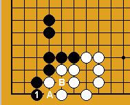 Dia.12 Supposons que noir réponde immédiatement après 1-3 du dia.10, en 1 ici. Ultérieurement, noir A, blanc B est privilège noir et blanc, avec 1-3 du dia.10, a gagné cinq points en sente. |