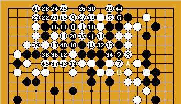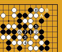 kô en A, Blanc devant jouer B. Après les coups sévères de