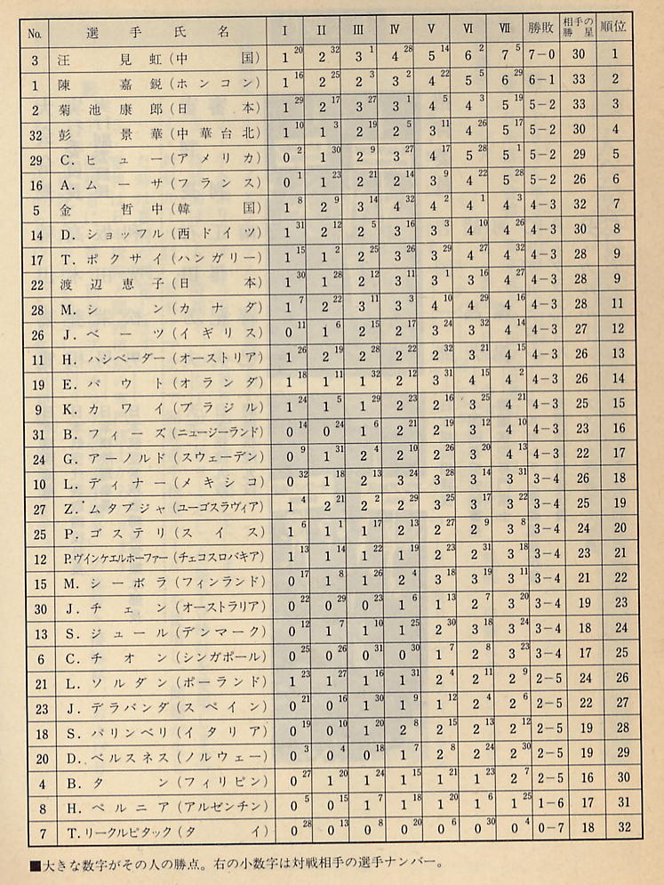 | 3rd 1981 | SHAO Zhenzhong | Chine | André MOUSSA | 1/2 + forfait 17exaequo/32 | RFG 10 |