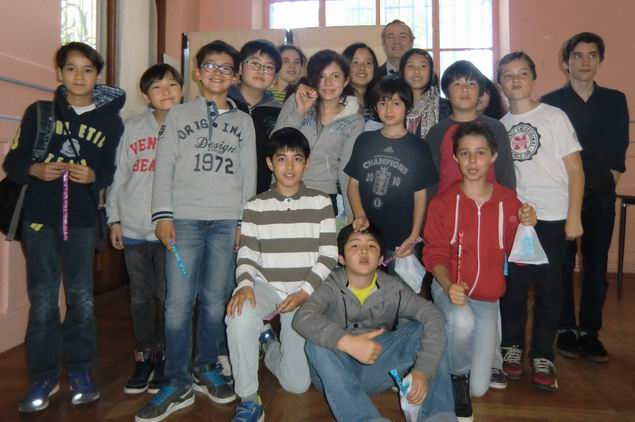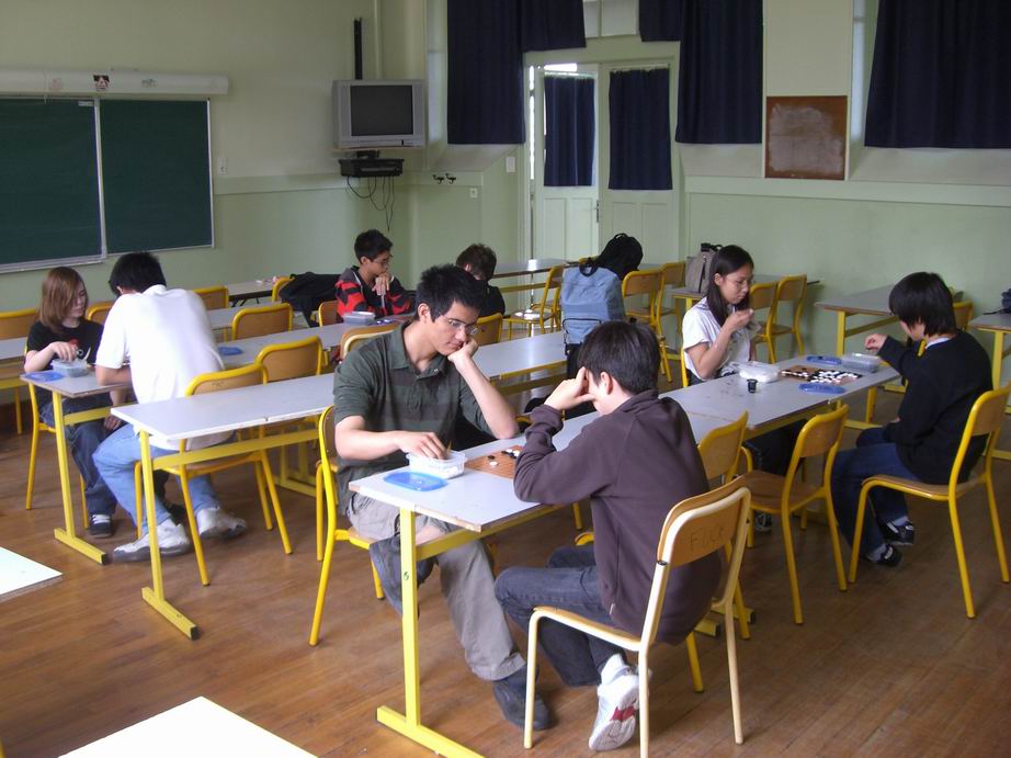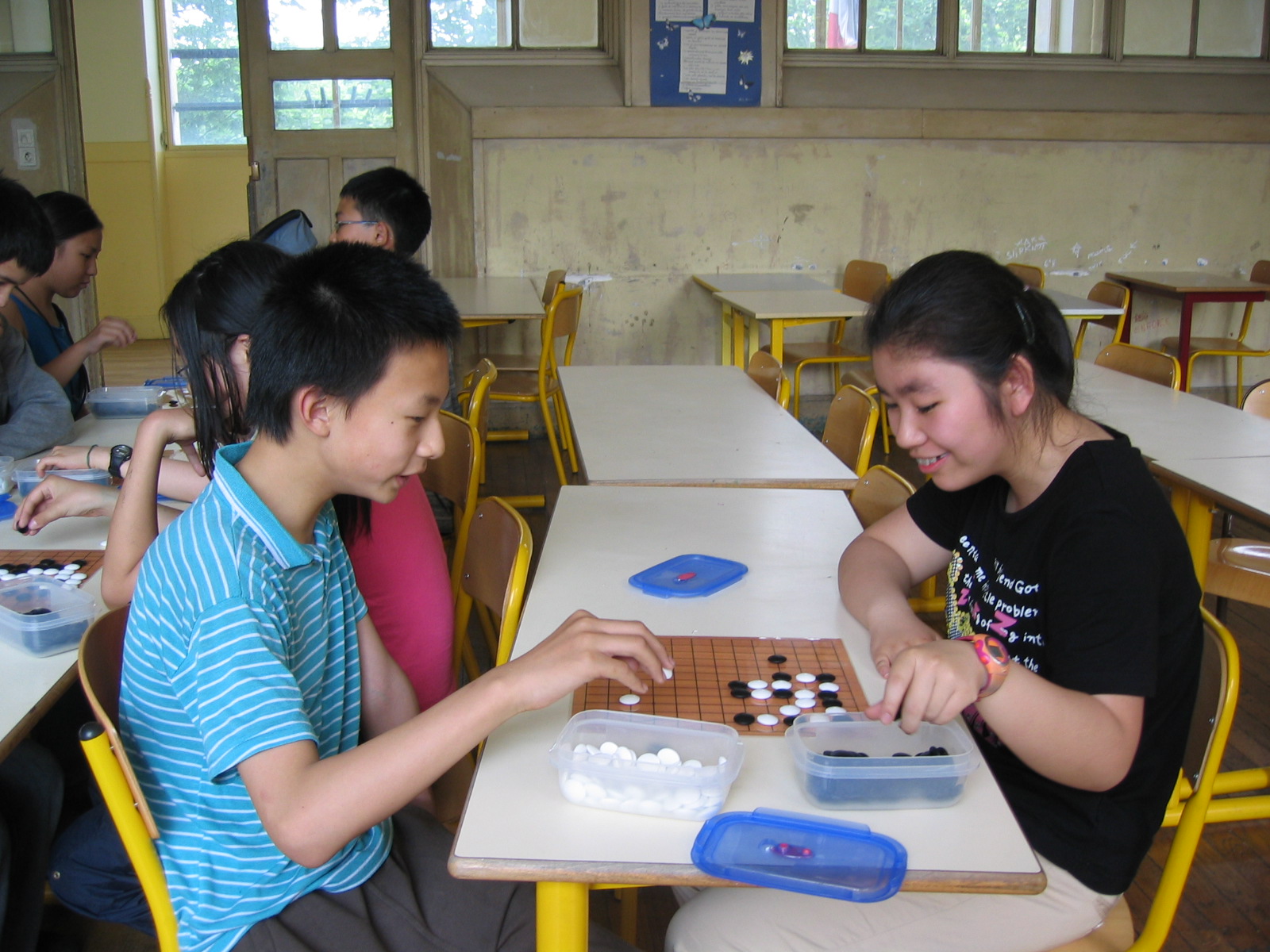 | Au Lycée La Fontaine, on peut apprendre au collège ou au lycée de nombreuses langues orientales. Il y a en particulier de nombreux professeurs de Japonais et même des classes bilingues Franco-Japonaise, avec des cours de Langue Japonaise et d'Histoire et Géographie Japonaise réservés aux élèves dont c'est la langue maternelle. L'association amicale Franco-Japonaise du Lycée La Fontaine est très active et elle organise chaque année une fête japonaise. En Mars 2002, pour cette fête, se tient un stand de démonstration du jeu de Go ; le succès auprès de tous les élèves est important. L'année suivante, elle décide de constituer un atelier bi-mensuel d'initiation au jeu de Go. |