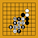 Si Noir continue, il s'expose à des double atari comme Blanc 10 qui permettent à Blanc de s'échapper Dia. 3 : Que doit faire Blanc s'il s'aperçoit que sa pierre "carré" est prise. Il peut avec profit, occuper le coin SO en menaçant de sortir du shichô, puis profiter de l'initiative pour compléter son coin par un 2ème coup. Le coup 2 qui menace de briser le shichô est appelé un "briseur de shichô". |