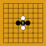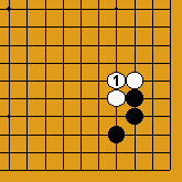 La connexion consiste à ajouter une pierre qui va relier de façon définitive 2 ou plusieurs pierres ensemble. Le coup 1 connecte les deux pierres blanches et empêche Noir de couper. |