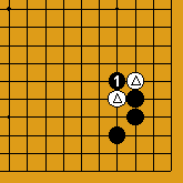 La situation est analogue au diagramme 1. Noir en coupant en 1 forcera les pierres delta à chercher chacune leur avenir et leur vie. |