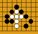 Lorsque Blanc joue 1, il met la pierre delta en atari. Noir peut s'échapper en jouant 2. |