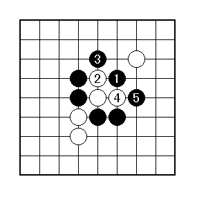 Diagramme 5 : Le geta 1 ruine ici les espoirs blancs et permet cette fois de capturer deux pierres. |