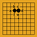 Elle a 6 libertés comme on le voit ici, marquées des lettres 'a', 'b', 'c', 'd', 'e', 'f' |