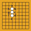 On compte les libertés d'une chaîne de pierres de la même façon que les libertés d'une pierre isolée. Une liberté est une intersection inoccupée voisine de l'une des pierres de la chaîne et directement reliée à la pierre par une ligne du goban.