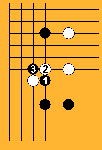 Dia. 18 : Si Blanc presse durement le Noir 1, à ce moment, Noir doit réagir avec 3 ; je vous laisse étudier la suite. |