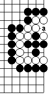 In 1928 in the Nihon Ki-in Official Tournament ( Oteai ) a sensation occurred. It was in the game between Segoe, 7-Dan and Takahashi, 3-Dan. They had a mannen ko (10,000 year ko). In Dia. 1 Black claims that a play at 'a' is worth one point. If Black plays 'a' and fills, then it is seki. If White fills, the group is dead. Black needed to kill the group to win, he refused to play at 'a'. White refused to play at 'a'-so the game was adjourned for one month. Eventually the Nihon Ki-in said, 'Both players won!' Finally a rule was made, Black must fill the ko to produce seki.