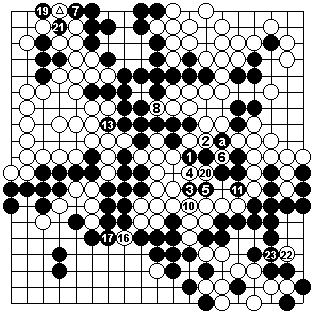 ko at “a”, 12 ko, 14 passes, 15 ko 18 ko, 24 ko at delta From Monthly Go Review N° 10, 1969. Oct Vol.9 |
