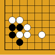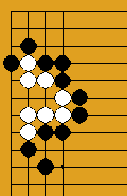 Ce samedi 21 Juin 2003, lors d'une séance d'initiation, j'ai proposé aux joueurs du club présents un de ces problèmes, le niveau fort. A ma grande surprise, ils ont presque trouvé la solution... mais pour être complet, il faut analyser toutes les variantes de résistance. Ce problème fait partie de ceux proposé par Lasker dans son beau livre "Go and Gomoku", the oriental games, publié en 1934 mais dont la solution ne me parait pas tout à fait correcte.