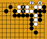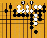 Dia. 3a Le coup 1 est le point vital. Blanc doit agrandir son espace vital avec 2 mais Noir joue un deuxième coup de placement avec 3.