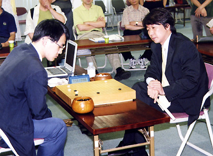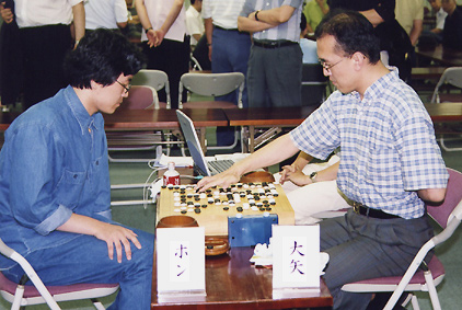 | Sakai Hideyuki 6-dan, le champion du monde amateur en 2000 qui est devenu professionnel en 2001 a gagné la 4ème coupe Phœnix . Il s'agit d'un tournoi sponsorisé de façon privé, ouvert aussi bien aux amateurs qu'aux professionnels. Sakai a gagné ce tournoi auparavant (en 2001, mais on ne savait pas si c'était en tant qu'amateur ou en tant que professionnel). L'anée dernière, il a pris la deuxième place en perdant contre le 9ème dan Kobayashi Satoru lors de la finale. Cette année, la finale réunissait les mêmes joueurs mais Sakai est parvenu à triompher avec Noir de Kobayashi en gagnant de 4,5 points; | ![]() |