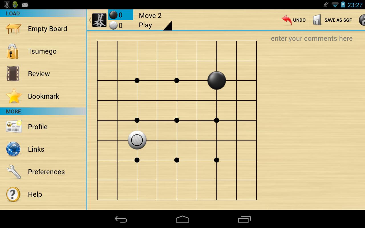 Un de mes préférés est Gobandroid qui permet à la fois de jouer à deux si on n'a pas de goban mais également qui propose des problèmes de tsumego. Classé en trois niveaux easy, intermediate et hard, il permet d'occuper agréablement son temps de transport, en particulier dans le métro.