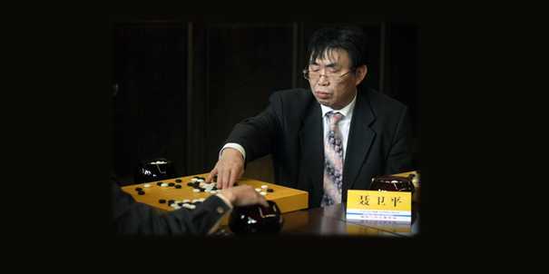 Nie Weiping plays Go against an amateur player in Fuzhou, Fujian