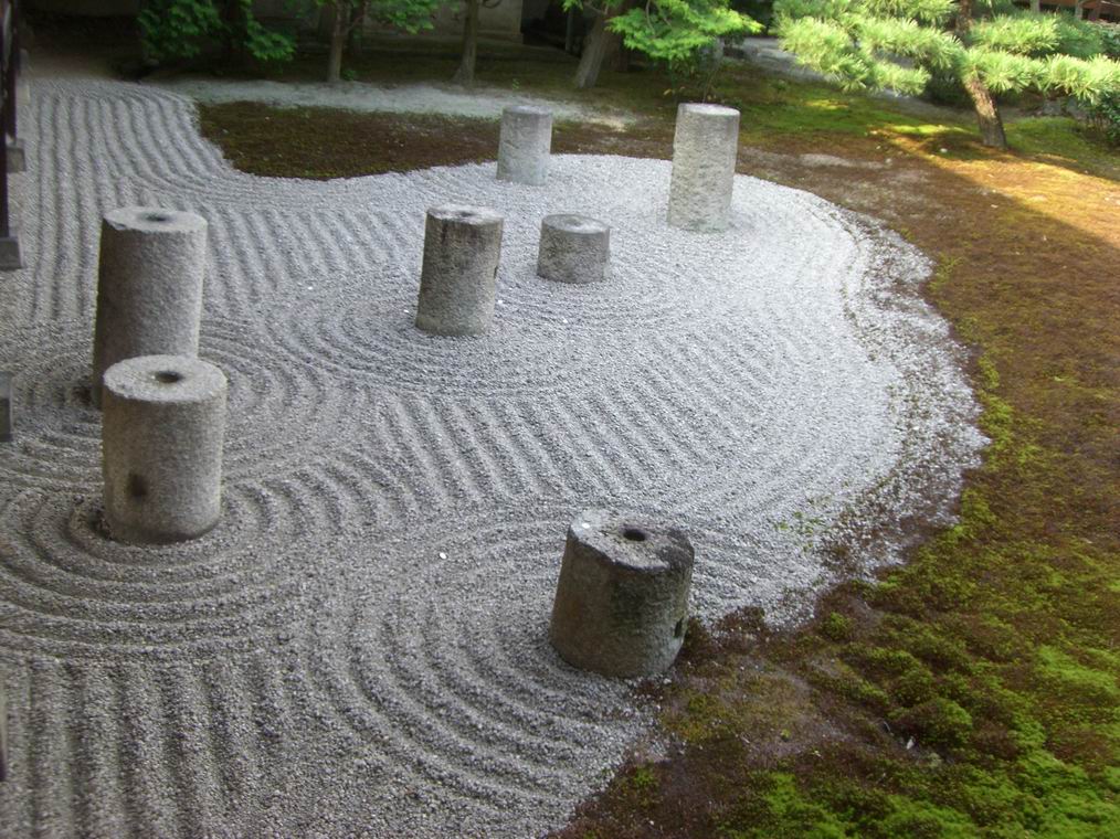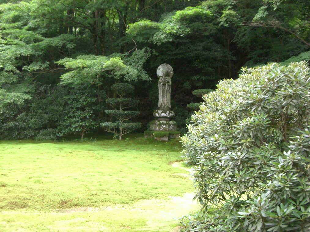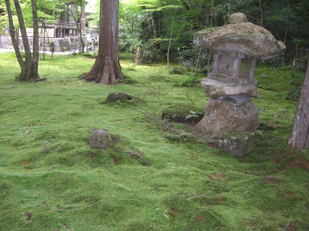 Mousse et troncs devant la porte de sortie de Sanzen-in