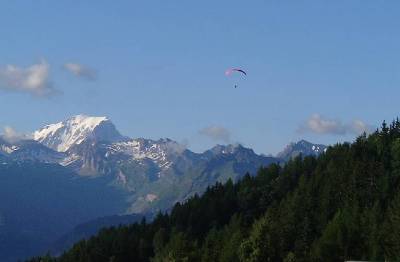 Le Mont-Blanc vue lors d’une soirée de beau temps, depuis la route principale du village |
