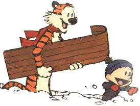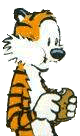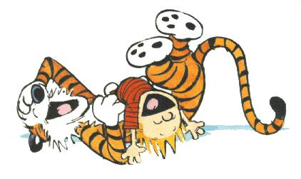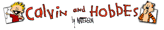 Calvin? Alors lui c'est un des deux personnages principale. C'est un petit garçon de 6ans qui a une imagination plus que débordante, en effet son meilleur ami est une peluche de tigre qu'il imagine comme réel et que l'on découvre tout au long de la BD. Il a une affection sans limite pour Hobbes (son tigre) qui d'ailleurs est peut être réel on ne le saura jamais (souvent quand Calvin se bat contre Hobbes il revient tout égratigné c'est une BD fantastique). Mais il adore aussi la télé, les samedis, les vacances la neige et la luge... Il invente de nombreuses machines qu'il croit réelles et qui lui permettent de se changer en n'importe quoi. On ne peut pas dire qu'il soit une tête en classe mais il sort des expressions très philosophes qui mettent encore plus d'humour dans ces chef-d'œuvres de Watterson... Par encore il déteste l'école où il fait des rêves les plus extravagants(se prenant pour un spationaute et en imaginant sa professeur comme un gros extraterrestre hideux pondu par son imagination).Il dit détester Susie une fille intelligente de sa classe mais on ne sait pas vraiment ses sentiments... Calvin est vraiment un personnage comique qui n'a pas fini de vous épater. Ah oui j'oubliai il a horreur du bain et adore embéter ses parents.... |